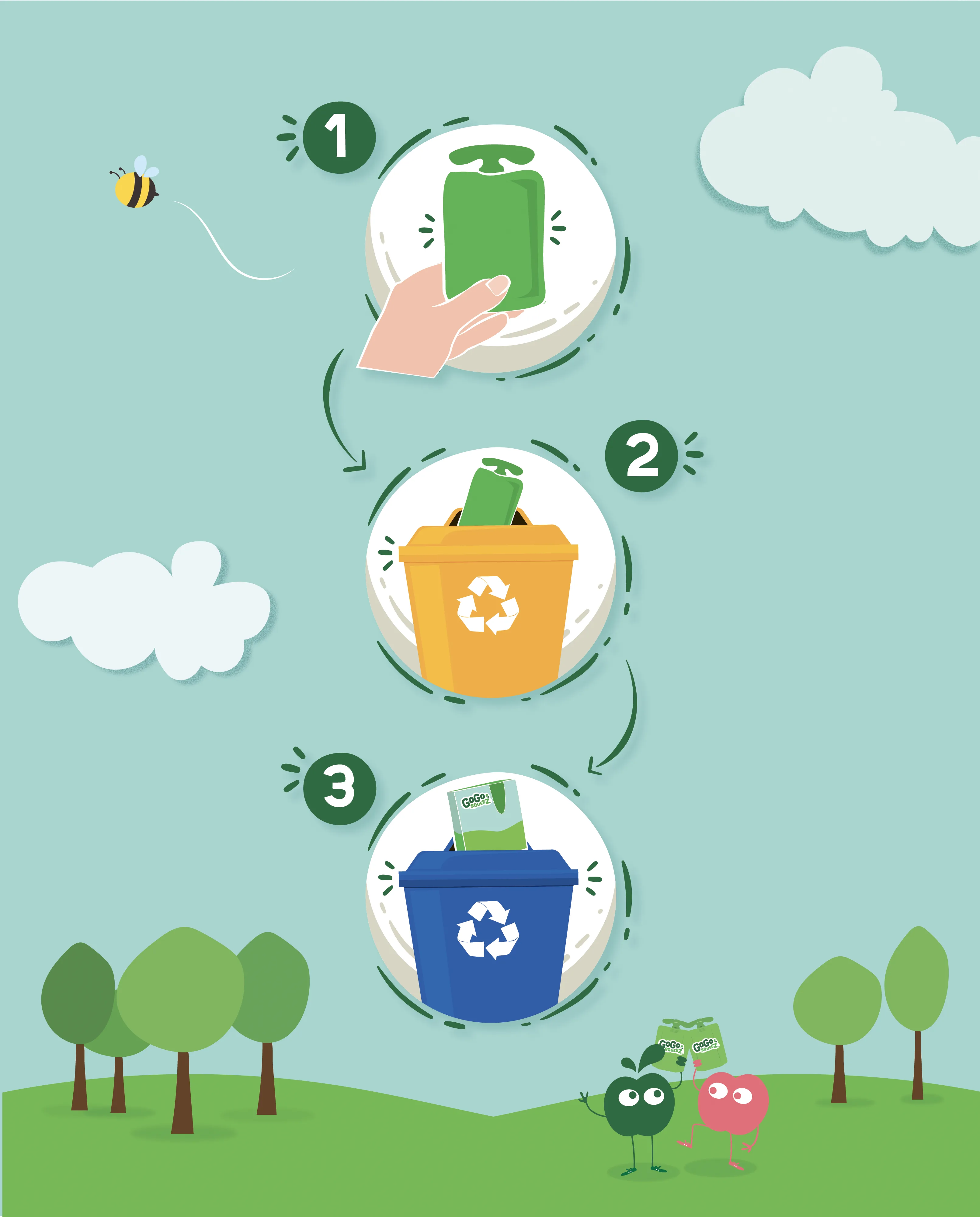 A partir de 2022, as saquetas e tampas GoGo squeeZ © serão progressivamente alteradas para serem fabricadas com 100% de polietileno, o que as tornará complemente prontas para serem recicladas em países onde as instalações podem reciclá-lo localmente. E assim, a nossa nova embalagem vai ficar diferente, mas a qualidade permanece a mesma.